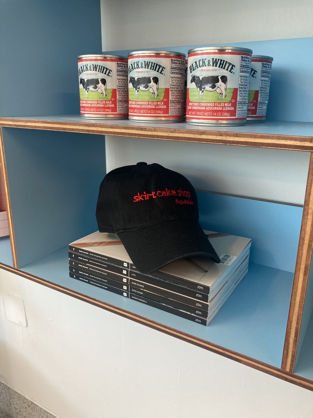 귀여운 글씨의 스커트케이크샵의 레터링이 레드컬러로