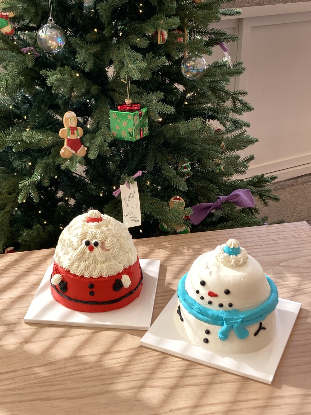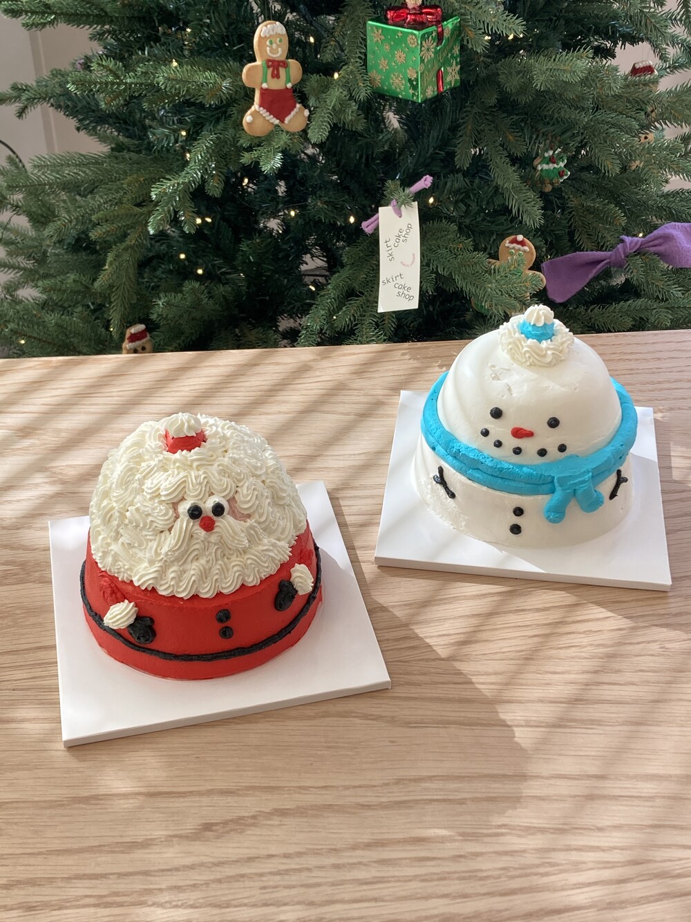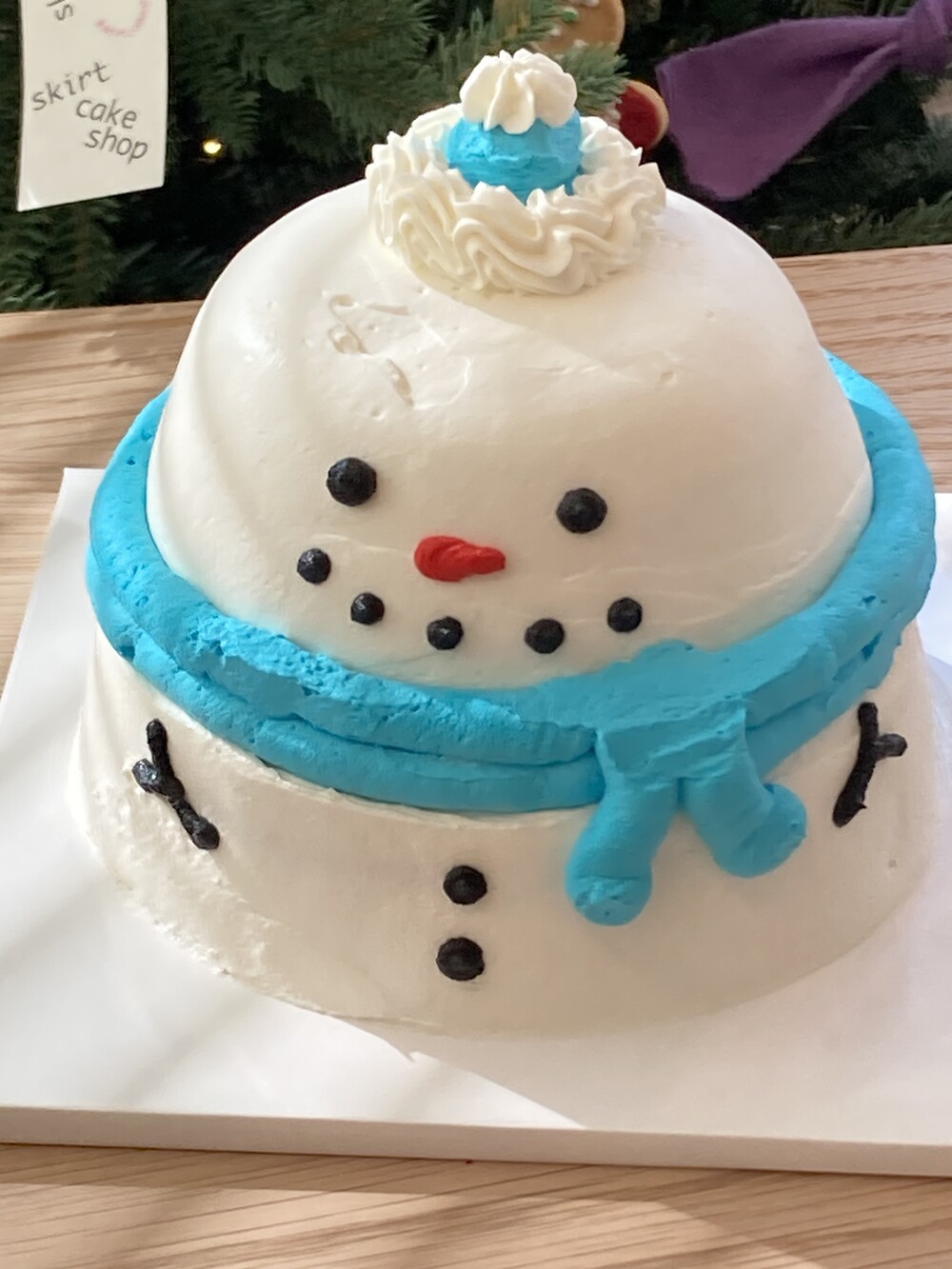 1호 바닐라스펀지케이크에 작은사이즈의 라즈베리케이크가 올라간 통통이 눈사람 케이크