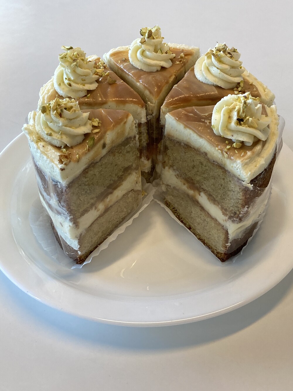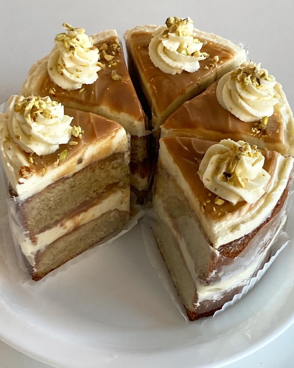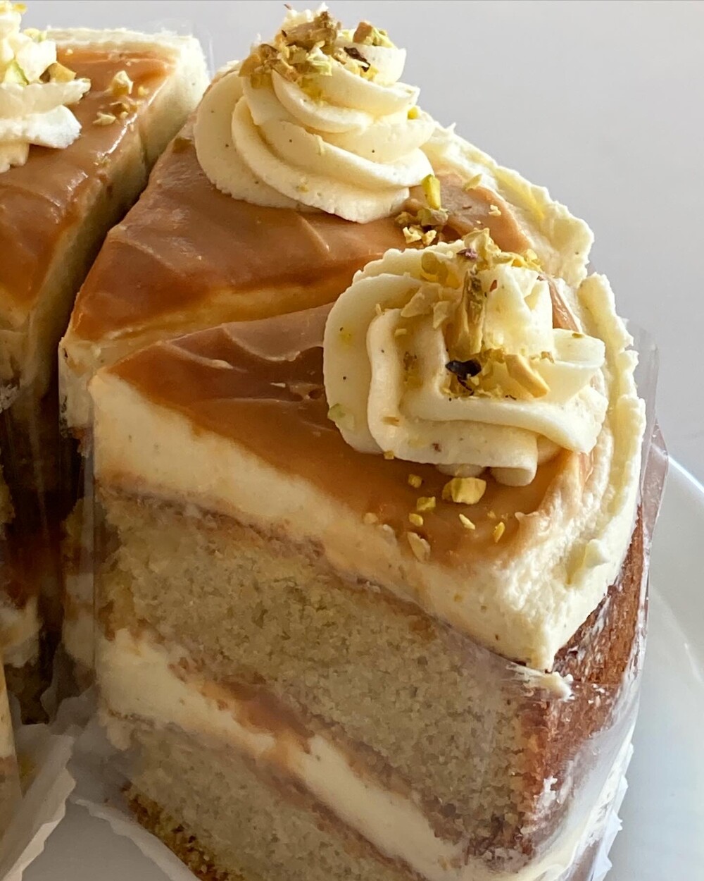 카라멜소스를 올린 부드러운 바닐라크림이 올라간 케이크